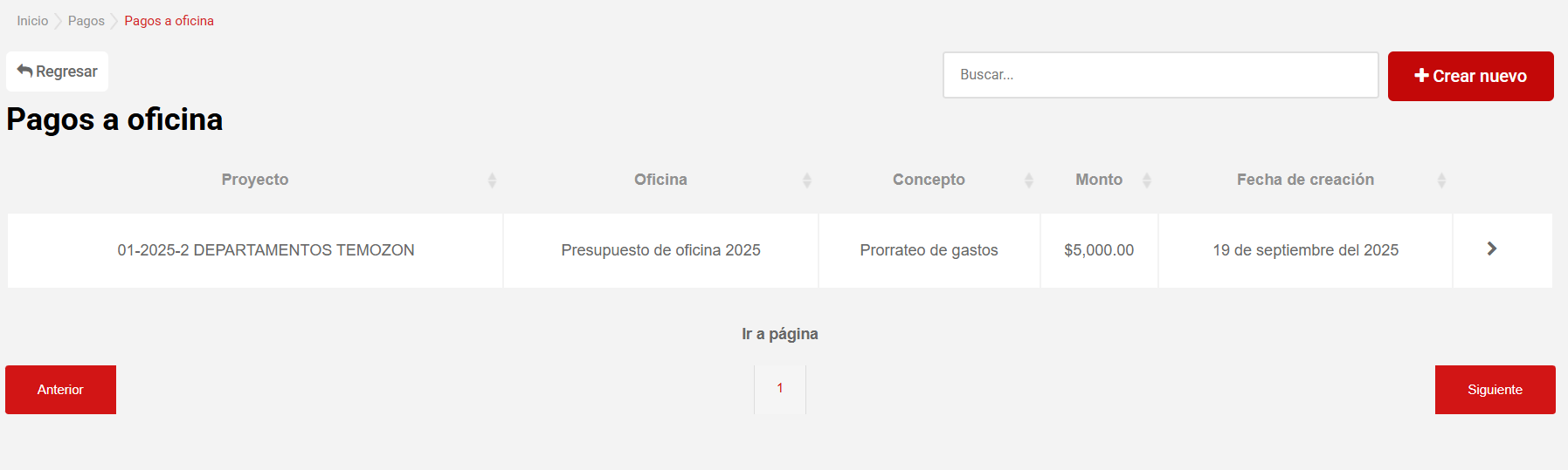 Para crear un nuevo pago a oficina se deberán seguir los siguientes pasos: