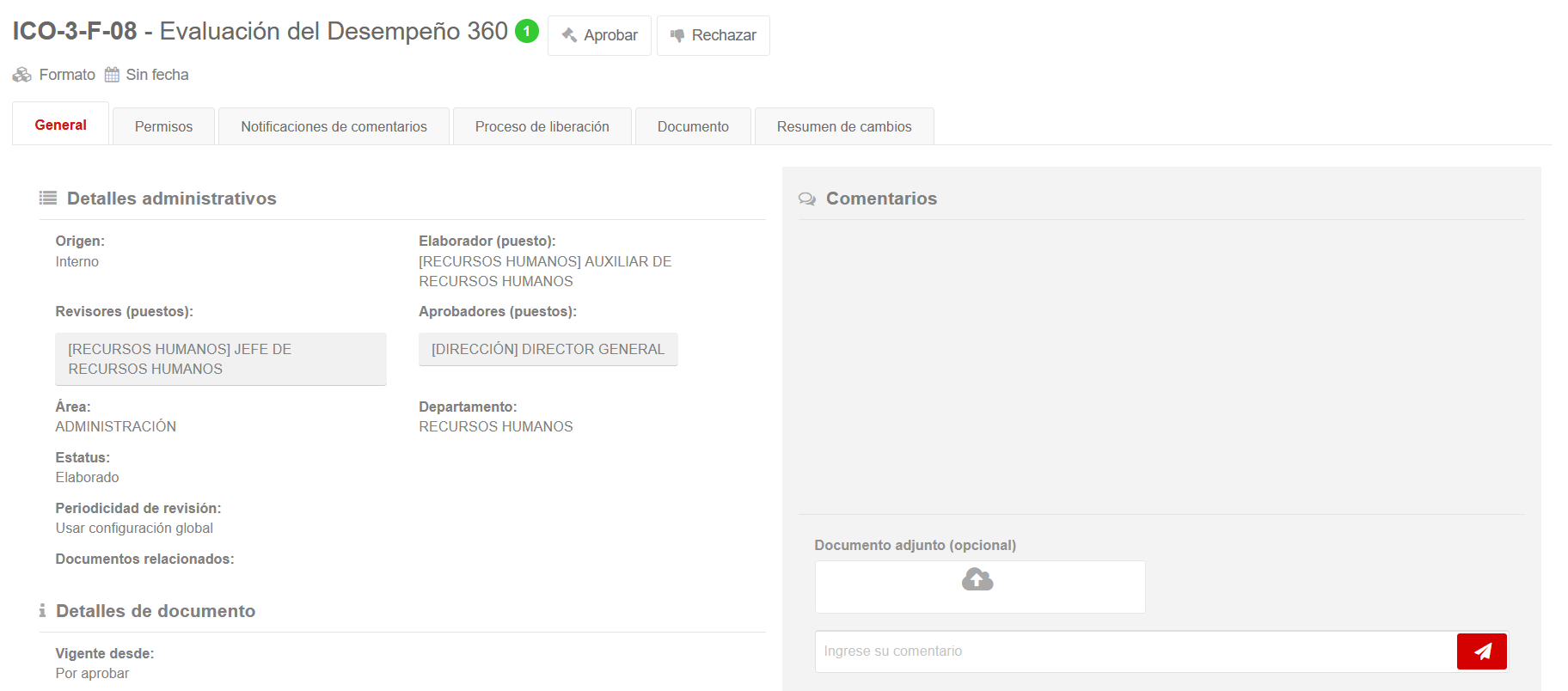 Aprobar o rechazar documento