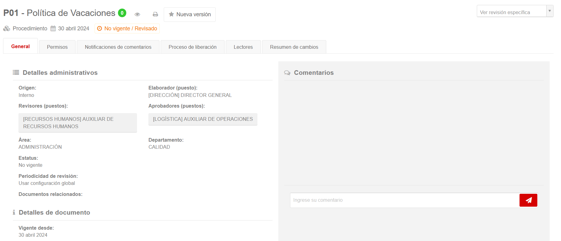 Para configurar una nueva versión de un documento ver Configuración de documentos/Elaborar (subir) documentos/Subir nueva versión